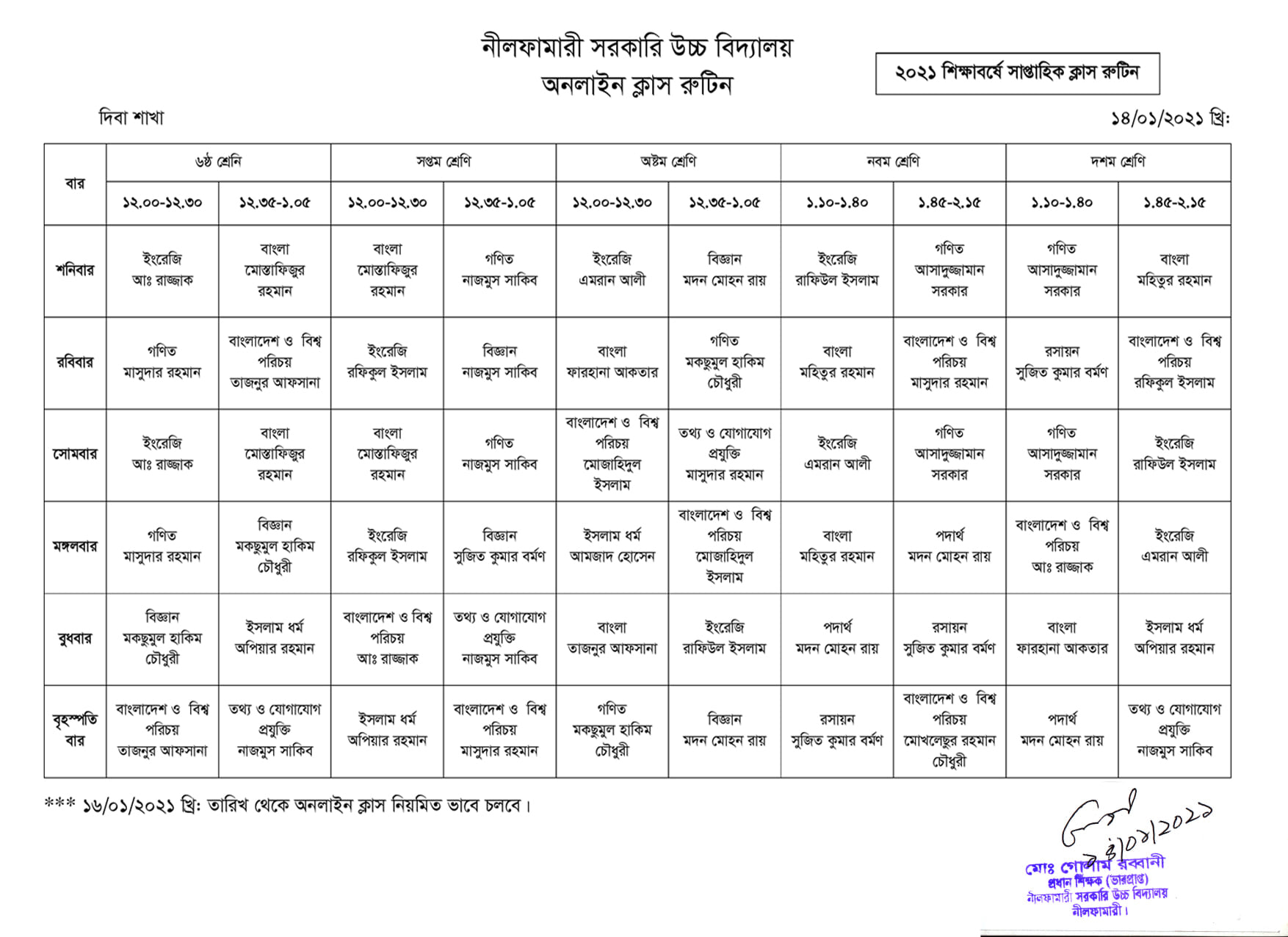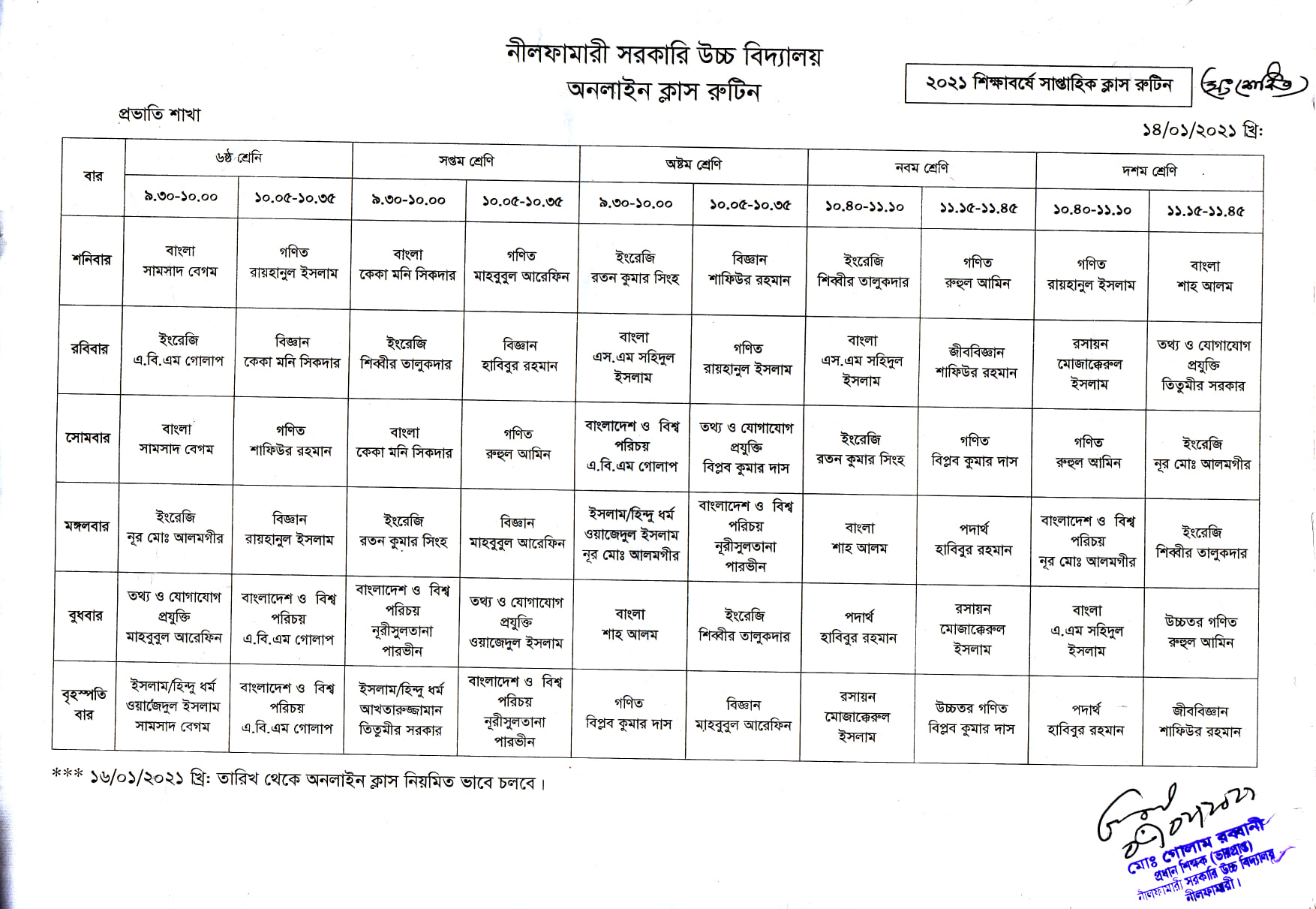 Online Class Rutine